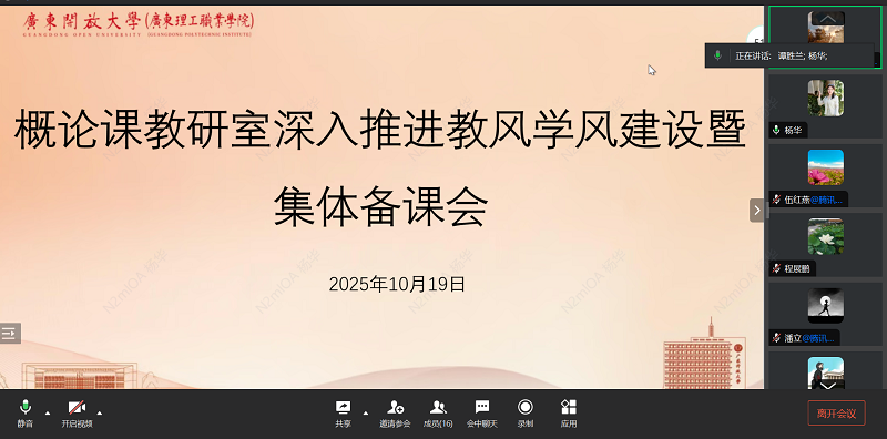 10月19日,概论课教研室召开教风学风建设暨集体备课会。会议由教研室主任谭胜兰老师主持,课程组全体教师参加学习。