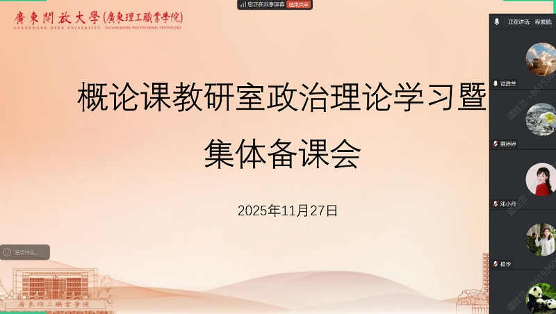 11月27日,概论课教研室召开政治理论学习暨集体备课会,会议由教研室主任谭胜兰主持,全体教师参加。