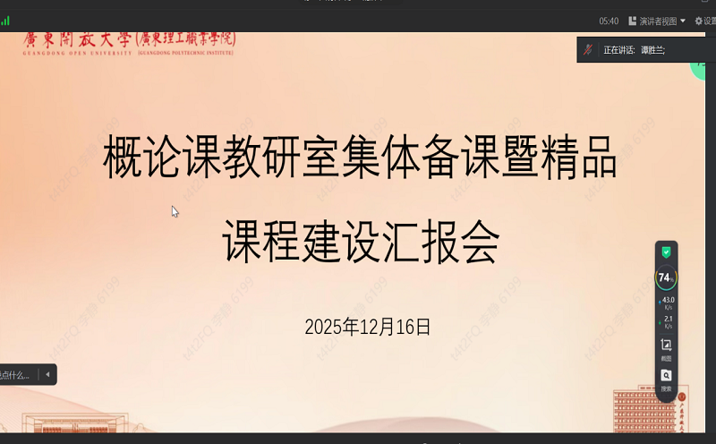 集体备课环节重点围绕“毛泽东思想和中国特色社会主义理论体系概论”第六章的教学内容和教学设计展开研讨。主讲教师针对学生可能存在的理论困惑点与现实关切,聚焦本章重难点内容和知识目标等作了精彩分享。与会教师们在集体研讨环节就本章重要内容与前置课程和后续课程内容的把握与衔接情况进行深入探讨,并围绕案例素材选取、设置课堂讨论与互动等方面进行生动发言。大家提出可采用多元教学模式丰富教学环节,建议充分利用经典影像史料、数据对比等资源服务理论教学,增强教学的历史感、说服力和感染力;同时结合粤港澳大湾区建设、高质量发展等新时代广东实践,融到教学过程,引导学生深刻认识邓小平理论的现实指导意义与持久生命力。