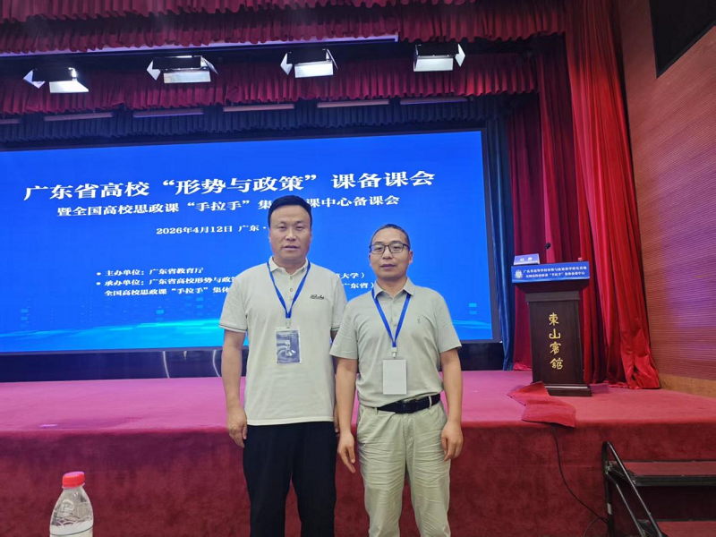 日前,广东省教育厅主办的广东省高等学校2026年春季学期“形势与政策”课备课会暨全国高校思政课“手拉手”集体备课中心2026年备课会在广州举行。广东省160余所学校共300多名老师齐聚备课会。学院副院长楚恒体副教授、形势与政策教研室主任程展鹏老师参会。