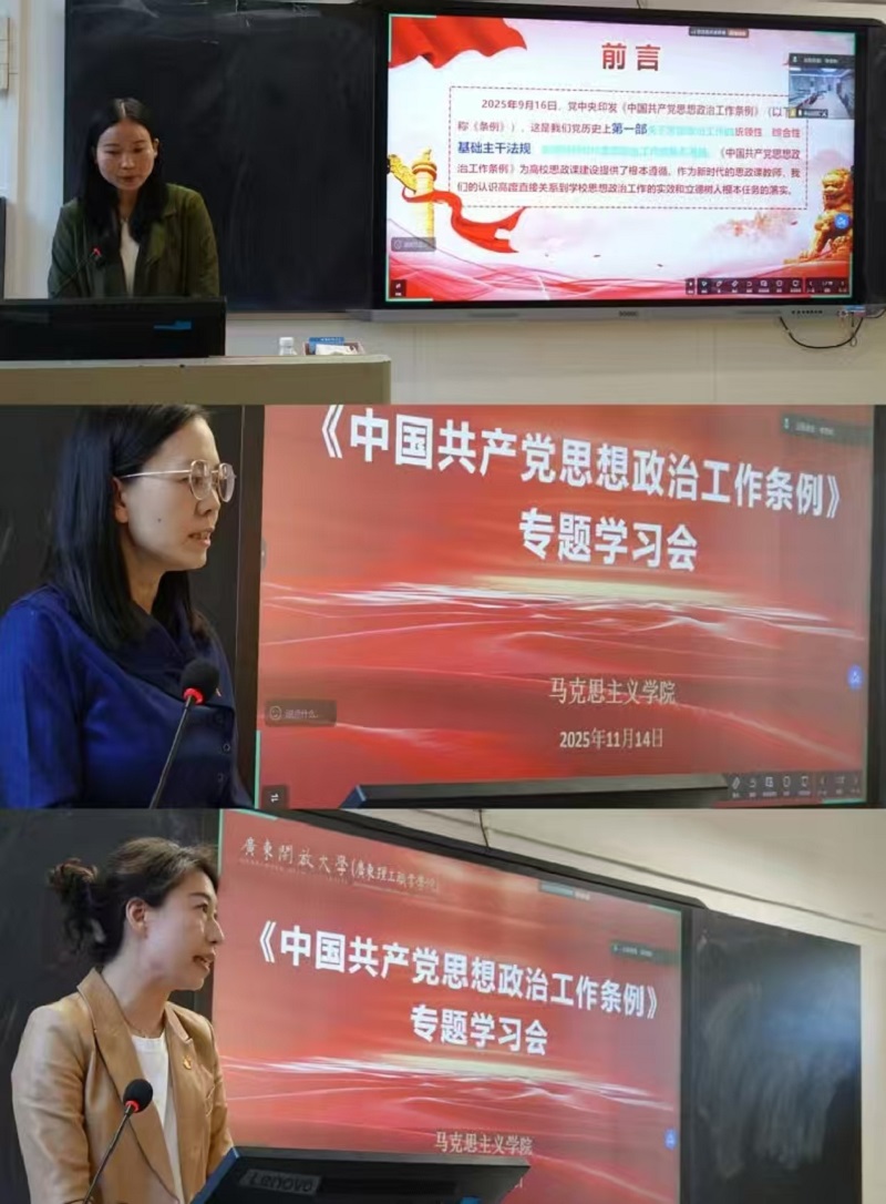 与会教师结合教学、科研与学生工作实际,踊跃交流了学习心得,并明确将在后续工作中深化对《条例》精神的把握,将其核心要义有效转化为实践行动,将贯彻落实《条例》的成效转化为研究成果,为提升思想政治工作质量与效率提供决策参考和智力支持,切实履行好新时代赋予的职责使命。